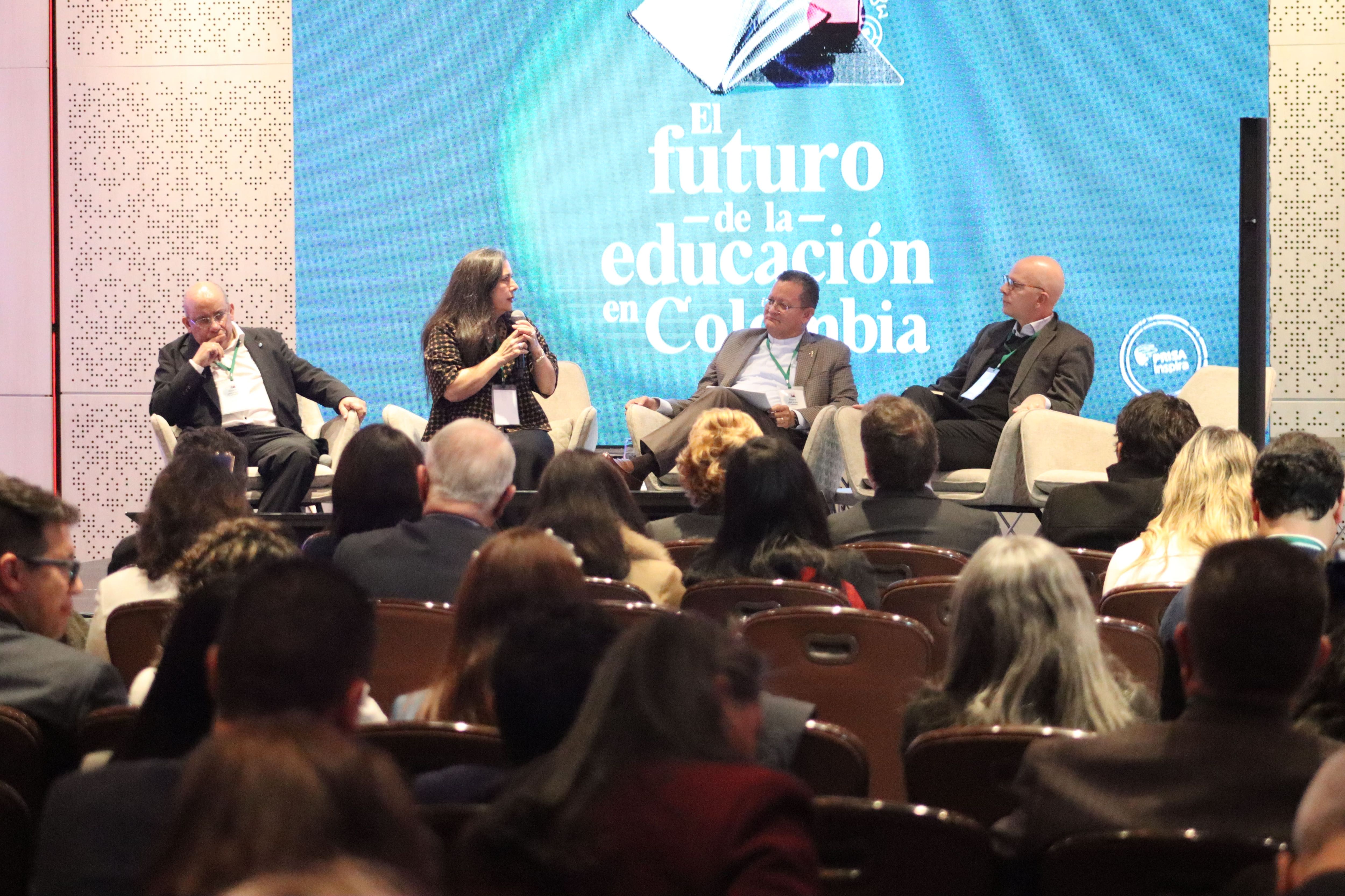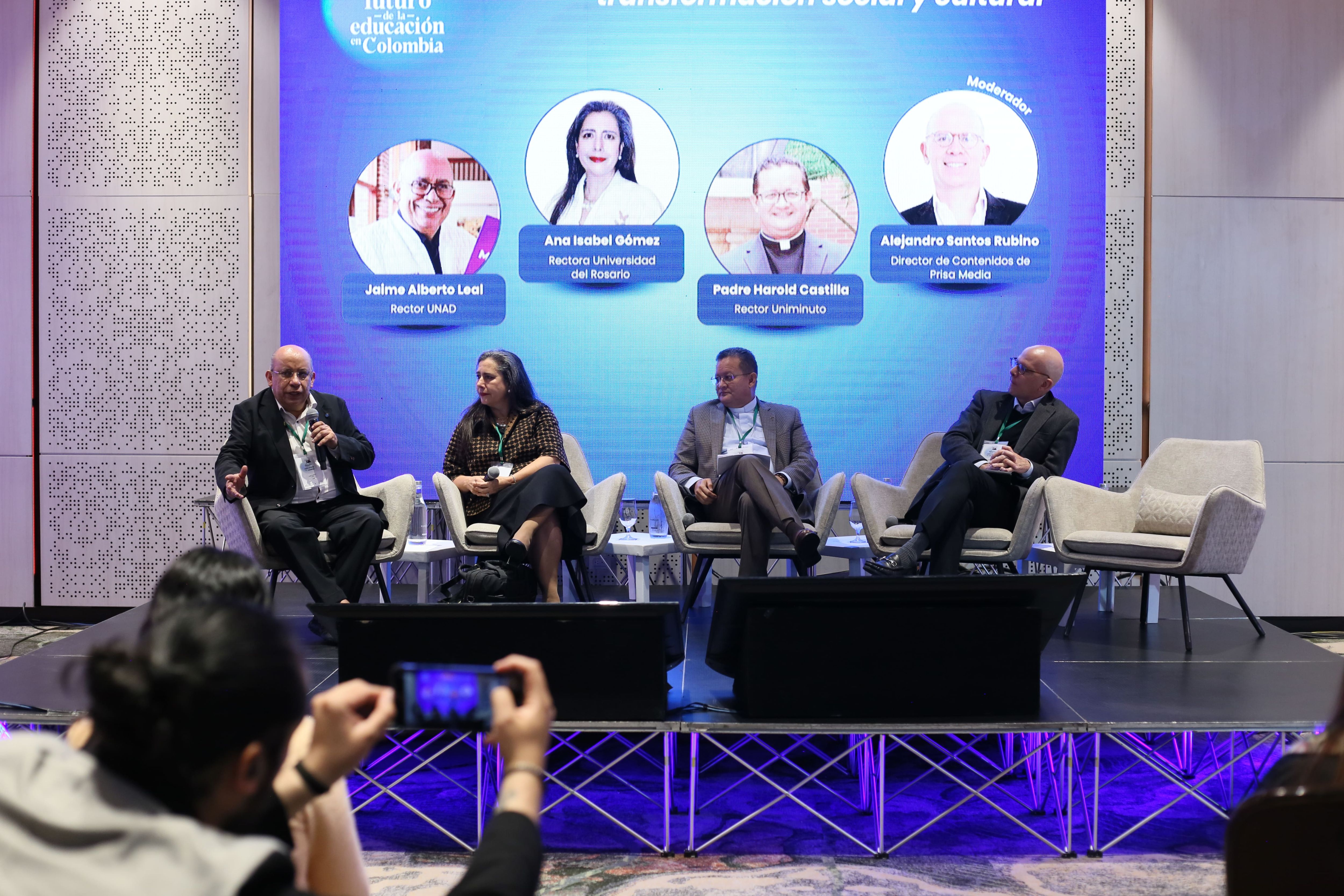 El panel “Retos de la educación en la transformación social y cultural” reunió también al padre Harold Castilla, rector general de la Corporación Universitaria Minuto de Dios (Uniminuto), a Jaime Alberto Leal, rector de la Universidad Nacional Abierta y a Distancia (UNAD), y a Alejandro Santos Rubino, director de contenidos de Prisa Media.